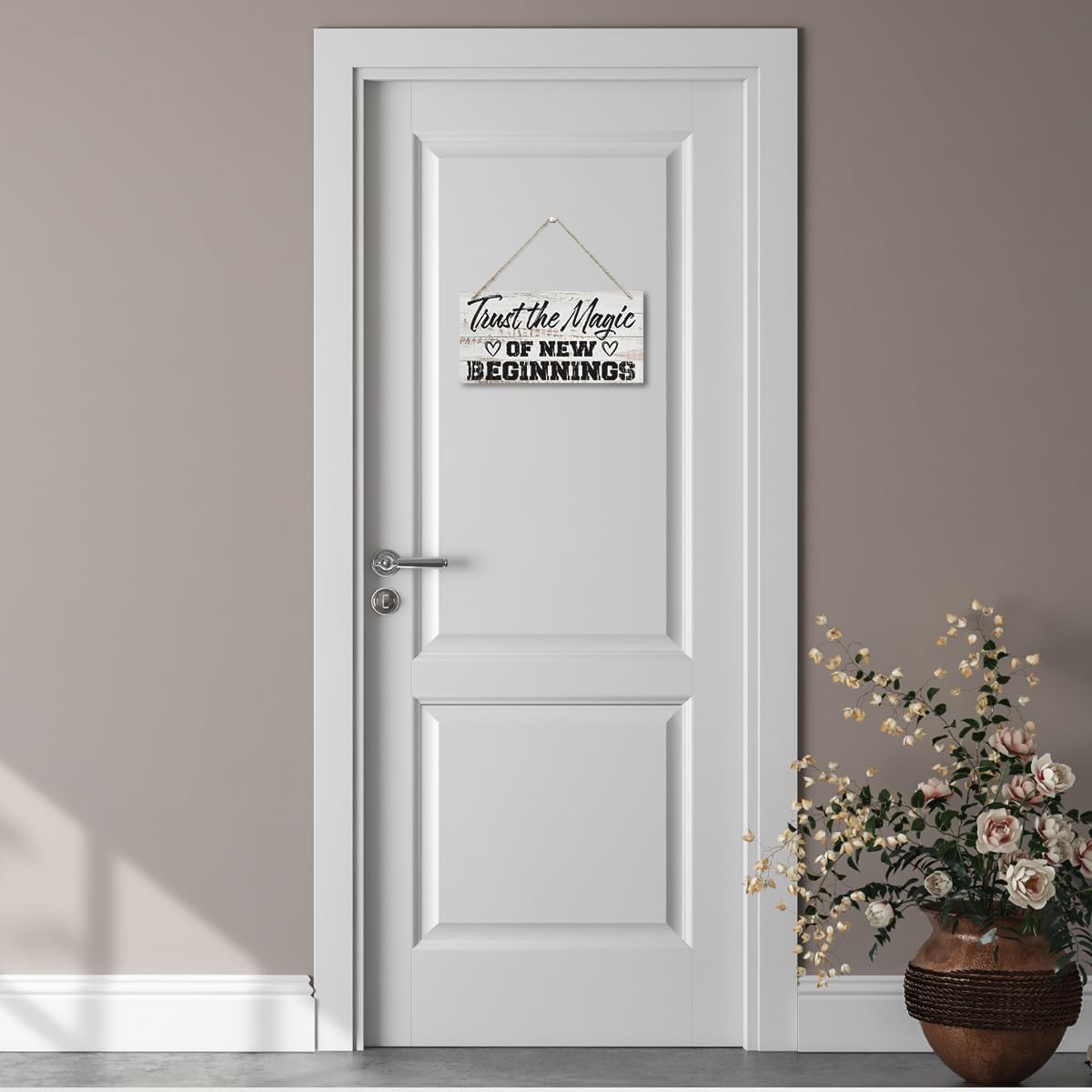 Inspirational Quote Wood Signs, Trust the Magic of New Beginning Sign, New Beginnings Gift, New Beginnings Gifts for Women, Housewarming Gift, Rustic Wooden Plaques Sign, 11.8 * 5.9 Inch