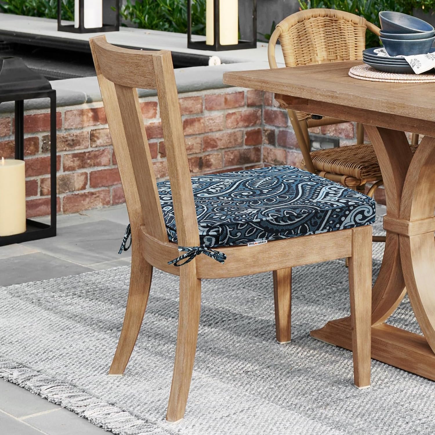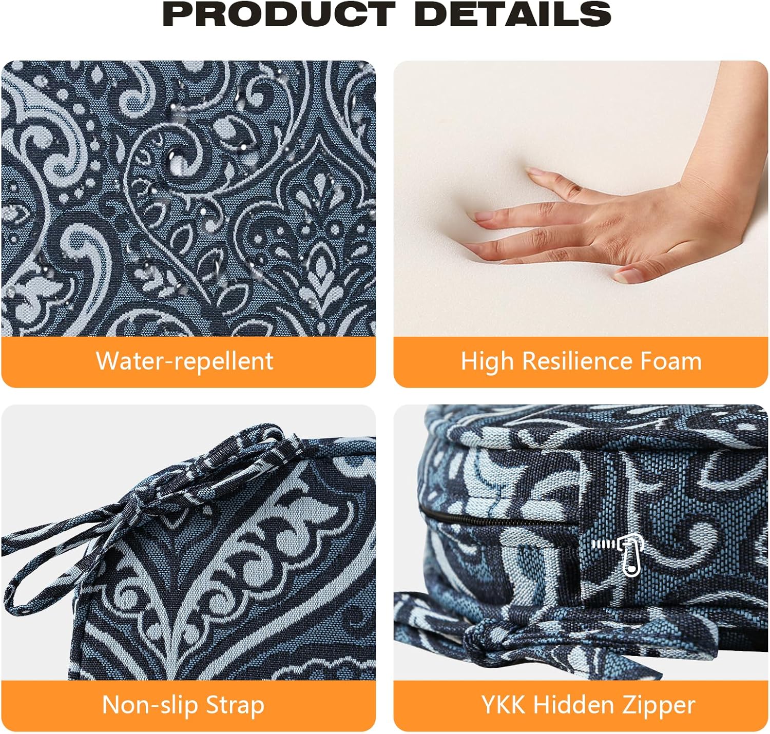 Round Corner Seat Cushions, 17" x 16" x 2", Set of 4, Indoor Outdoor Water Repellent Universal Chair Pads with Ties for Patio Furniture, Garden Deck Dining Chairs, Damask Blue Flower