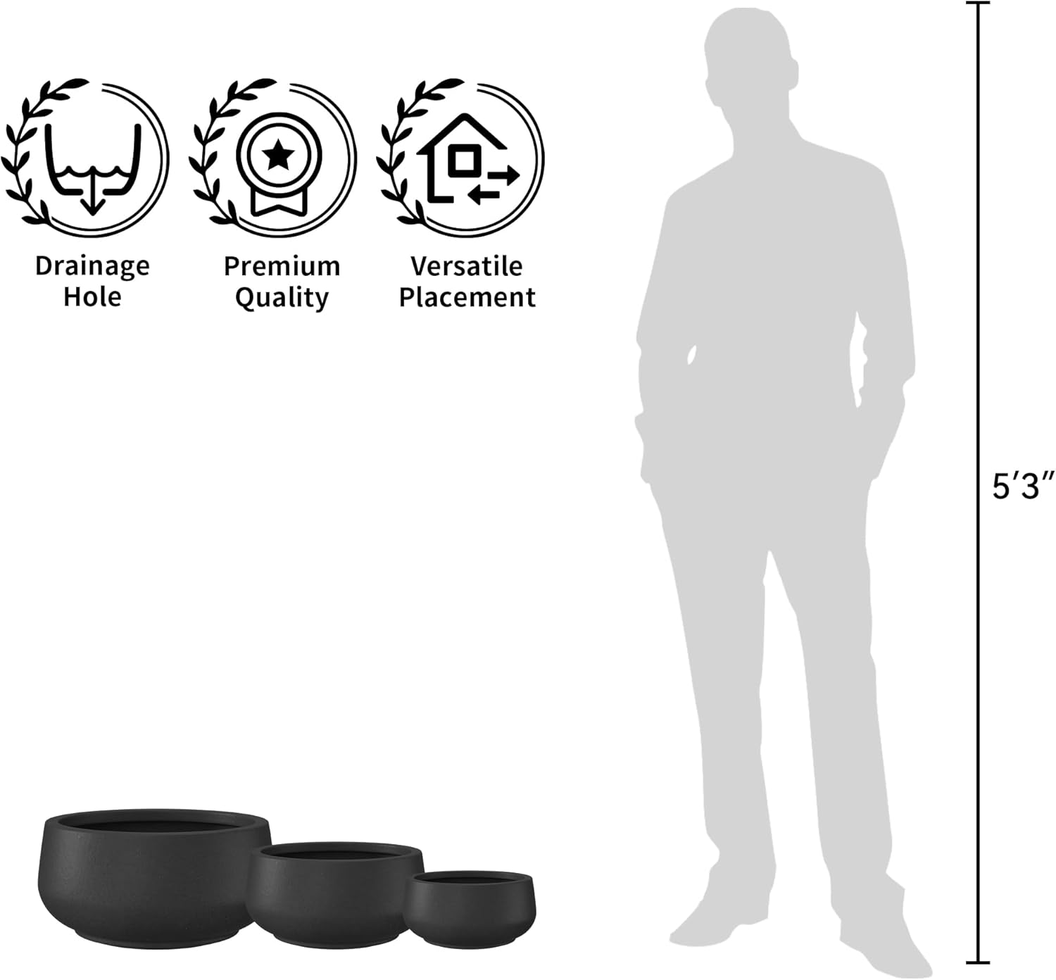 Kante 12.5" Dia Round Concrete Bonsai Planters, Outdoor Indoor Garden Plant Pot with Drainage Hole for Home, Patio, Garden, Black