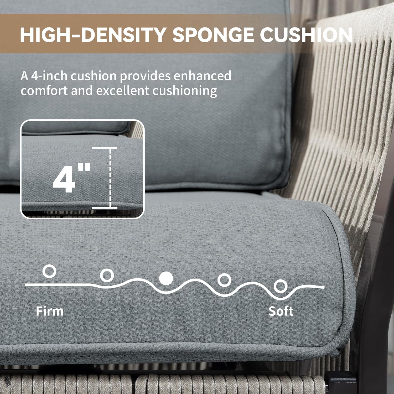 - UV-Resistant & Low-Maintenance Aluminum Patio Set: Included Sunbrella-grade Olefin cushions withstand 800+ hours of sun exposure, while water-resistant fabric ensures all-weather durability. Removable covers with hidden zippers simplify cleaning, keeping your outdoor furniture sets pristine year-round