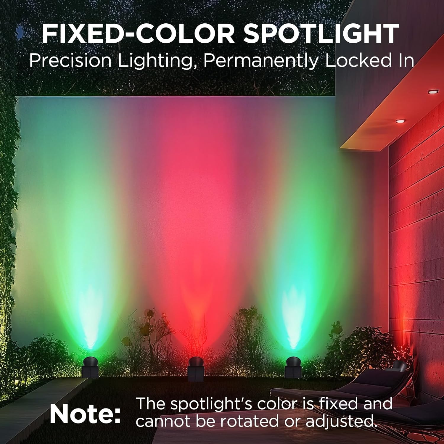 - Reminder: This package contains one fixed red light and one fixed green light, all spotlights with non-adjustable, permanent colors. Designed for versatile application, they can be used independently for a bold effect or combined with other colored spotlights to create vibrant festive displays and dramatic atmospheric ambiance.