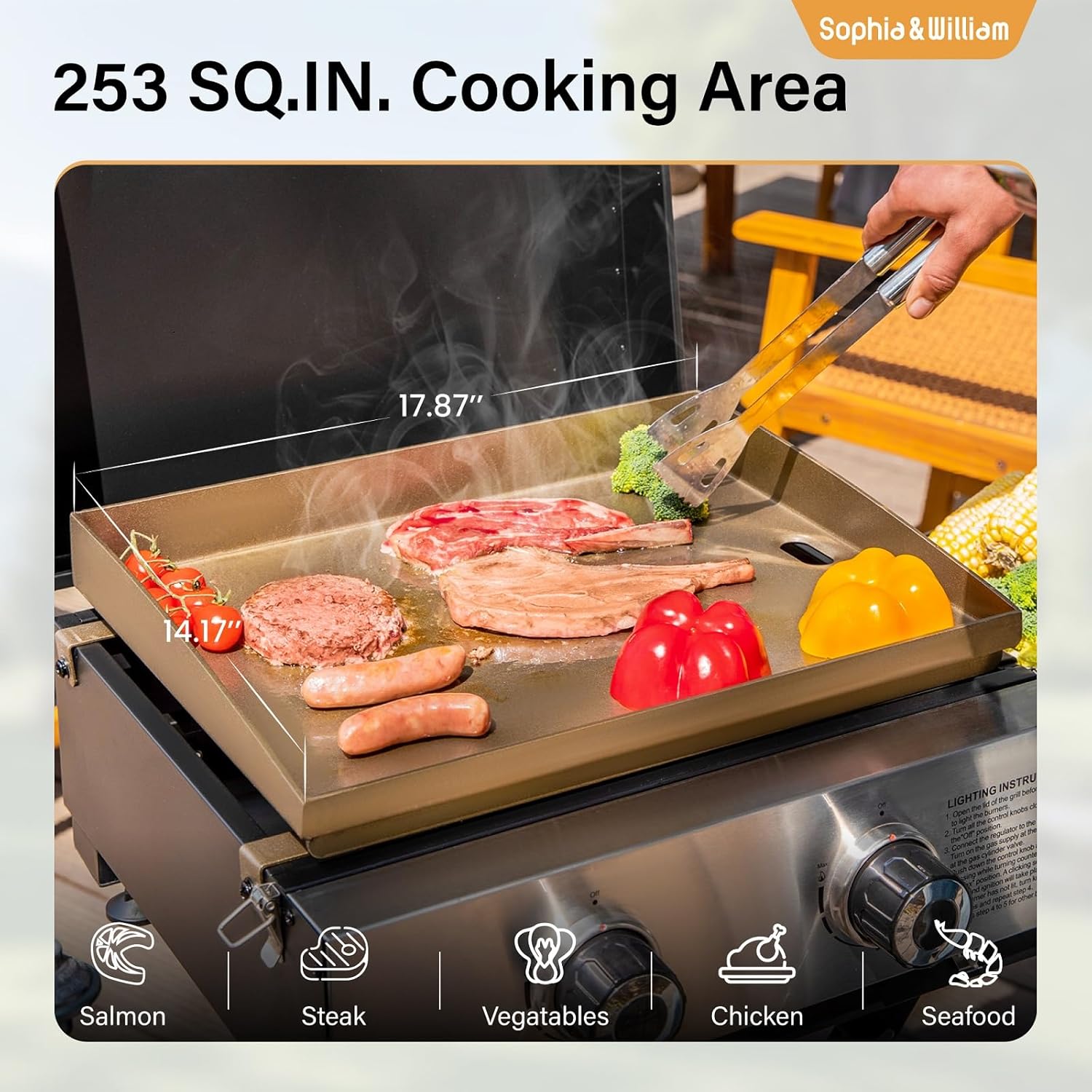 - Large Grilling Area: 253 sq.in. flat top cooking surface that lets you grill more food at once. Whether you're camping in the woods, tailgating before the big game, on a road trip, or cooking outside your RV, this generous space makes outdoor cooking fast, efficient, and enjoyable
