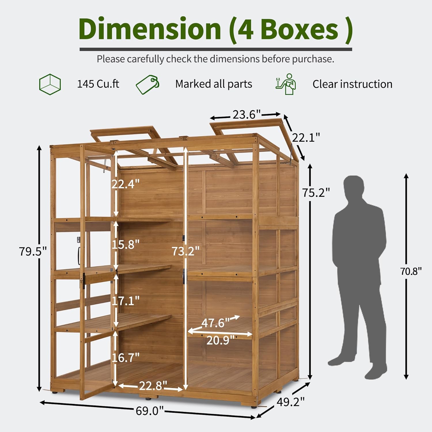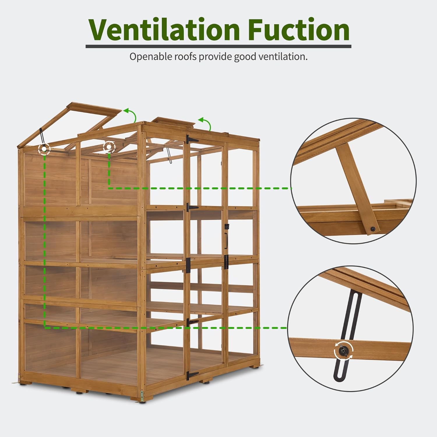 - Fir Solid Wood: The garden greenhouse is made of fir wood, and the exterior has been polished to express a rustic style; Natural Color blends easily with other décor and natural settings
