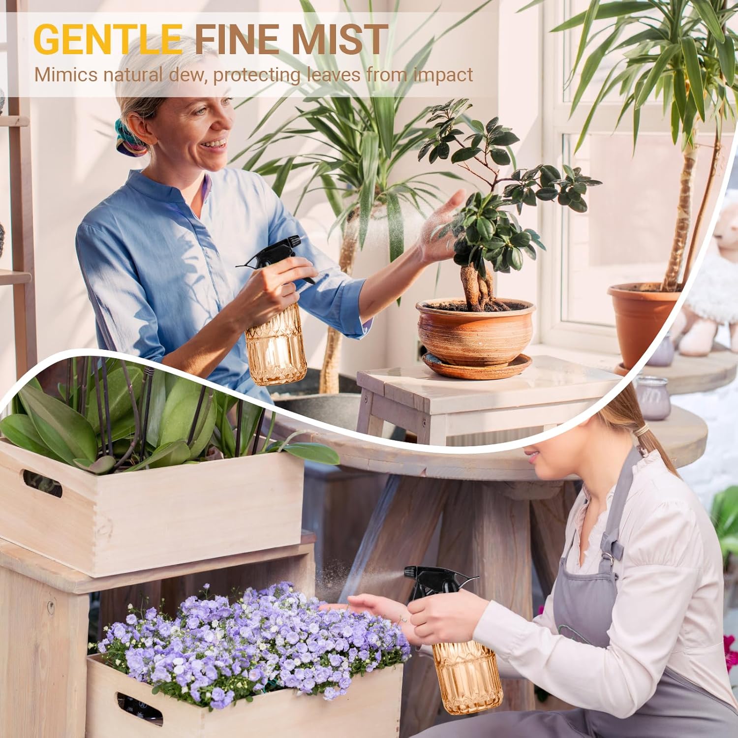 - [ Gentle and Even Spray ] The fine mist simulates natural dew, protecting leaves from impact and making it ideal for delicate plants and flowers. Such as succulent plants, herbs, ferns, orchids, cactus etc.