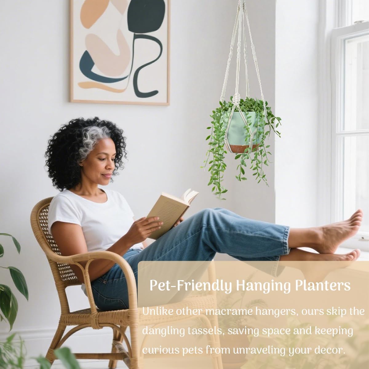 - Minimalist Boho Decor – Create a floating indoor jungle in your home, balcony, or patio. An ideal gift for plant lovers, housewarmings, weddings, or holidays. Unlike flimsy tasseled hangers, our minimalist design prevents pets from chewing and saves space.