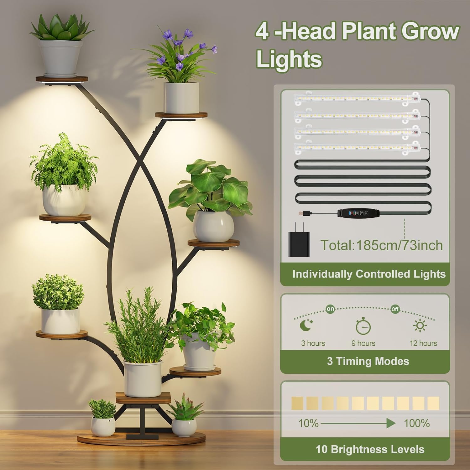 - [Full Spectrum Grow Light with Timer & Modes] This plant stand with grow light features full-spectrum LEDs with adjustable brightness, 3 color settings, and a smart timer, ensuring your plants get sufficient light in every season—even without window sunlight.