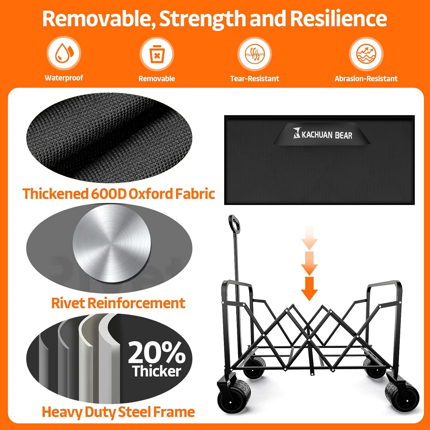 - Multipurpose Collapsible Powerhouse:From sandy shores to backyard BBQs, this foldable wagon excels everywhere! Perfect as a beach wagon with big wheels for sand, camping cart, or grocery hauler, it tackles diverse tasks effortlessly. Gift this collapsible wagon to adventure lovers—its one-year warranty and 24/7 support guarantee peace of mind. Redefine mobility with wagons carts built to conquer life’s heaviest loads!