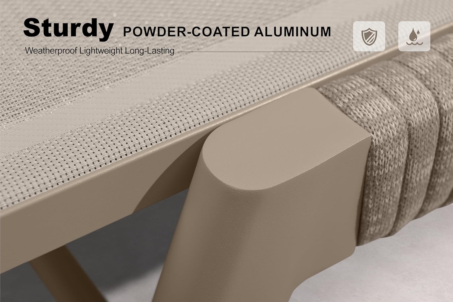 - Lightweight Powder-Coated Aluminum Frame: Featuring a robust aluminum frame with a smooth powder-coated finish, this chaise lounge resists rust and UV rays while ensuring easy upkeep.