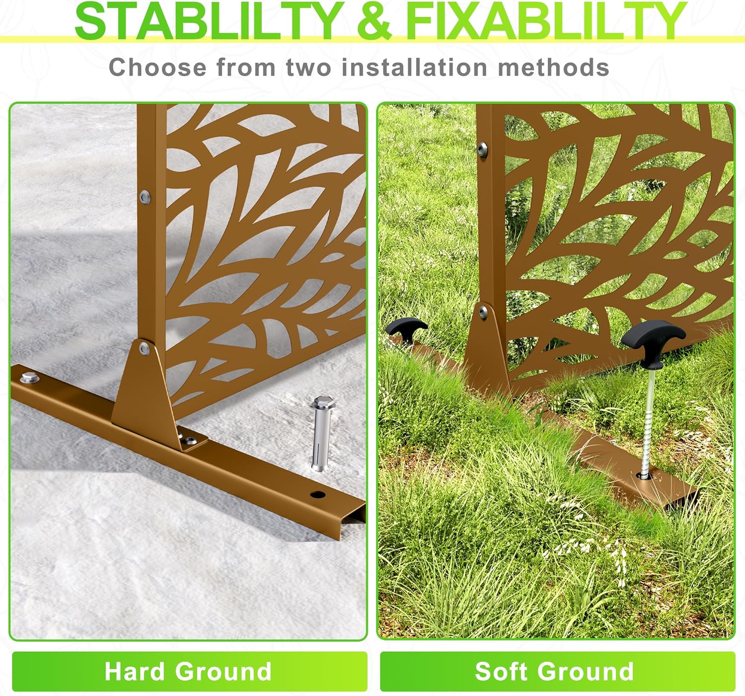 - 【Robust Metal Build】The metal privacy screen boasts a robust construction crafted from high-quality galvanized steel. Designed to endure the rigors of outdoor elements, its sturdy build guarantees prolonged durability.