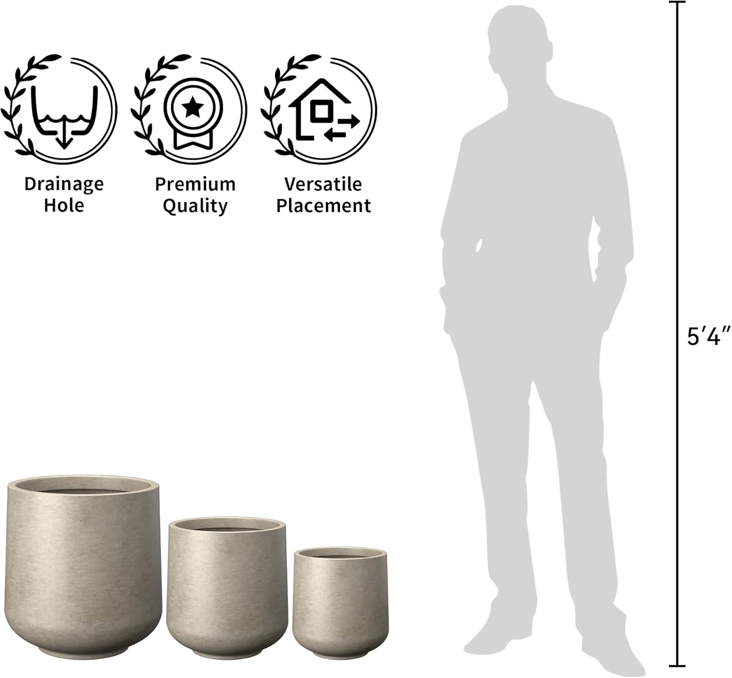 Kante 15.3" Dia Round Concrete Planter, Outdoor Indoor Large Plant Pots Containers with Drainage Hole and Rubber Plug for Home Garden Patio, Buff Concrete