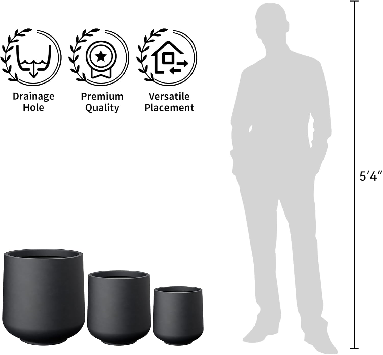 Kante 15.3" Dia Round Concrete Planter, Outdoor Indoor Large Plant Pots Containers with Drainage Hole and Rubber Plug for Home Garden Patio, Black