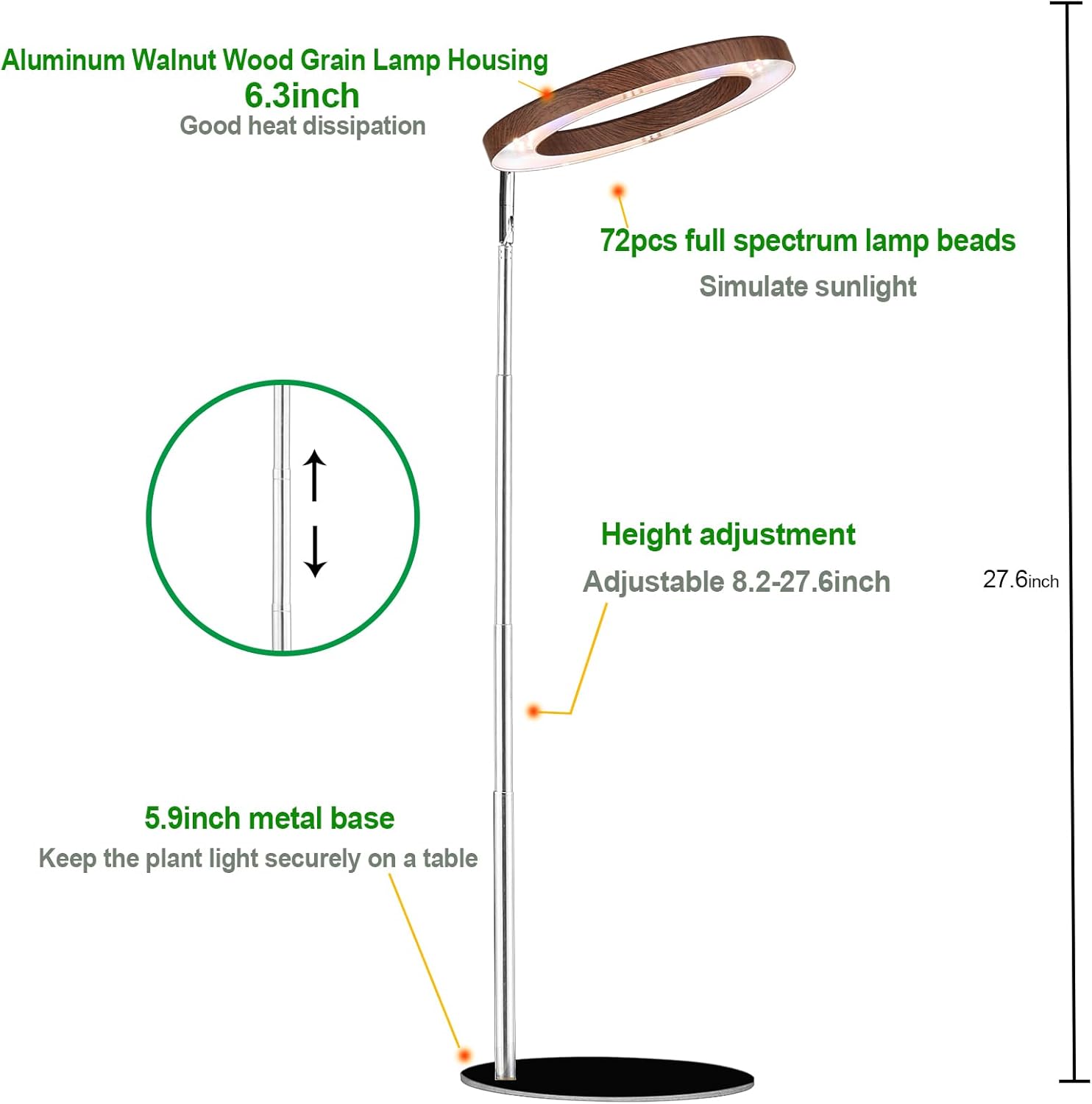 yadoker 72 LEDs Plant Grow Light for Indoor Plant,Aluminum Walnut Wood Grain Desk LED Grow Light, Height Adjustable,6.3" Aluminum Housing,Automatic Timer with 8/12/16 Hours,10-Level Brightnes