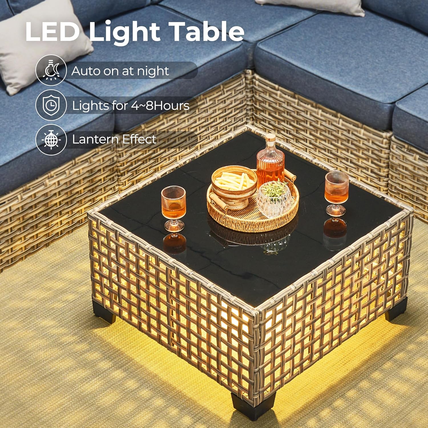 HOOOWOOO Outdoor Sectional Patio Furniture Set with Fire Pit Table,13 Pieces Wicker Conversation Sets L Shaped Couch,Extra Deep Out Door Sofa Outside Furniture with Swivel Chairs,Denim Blue