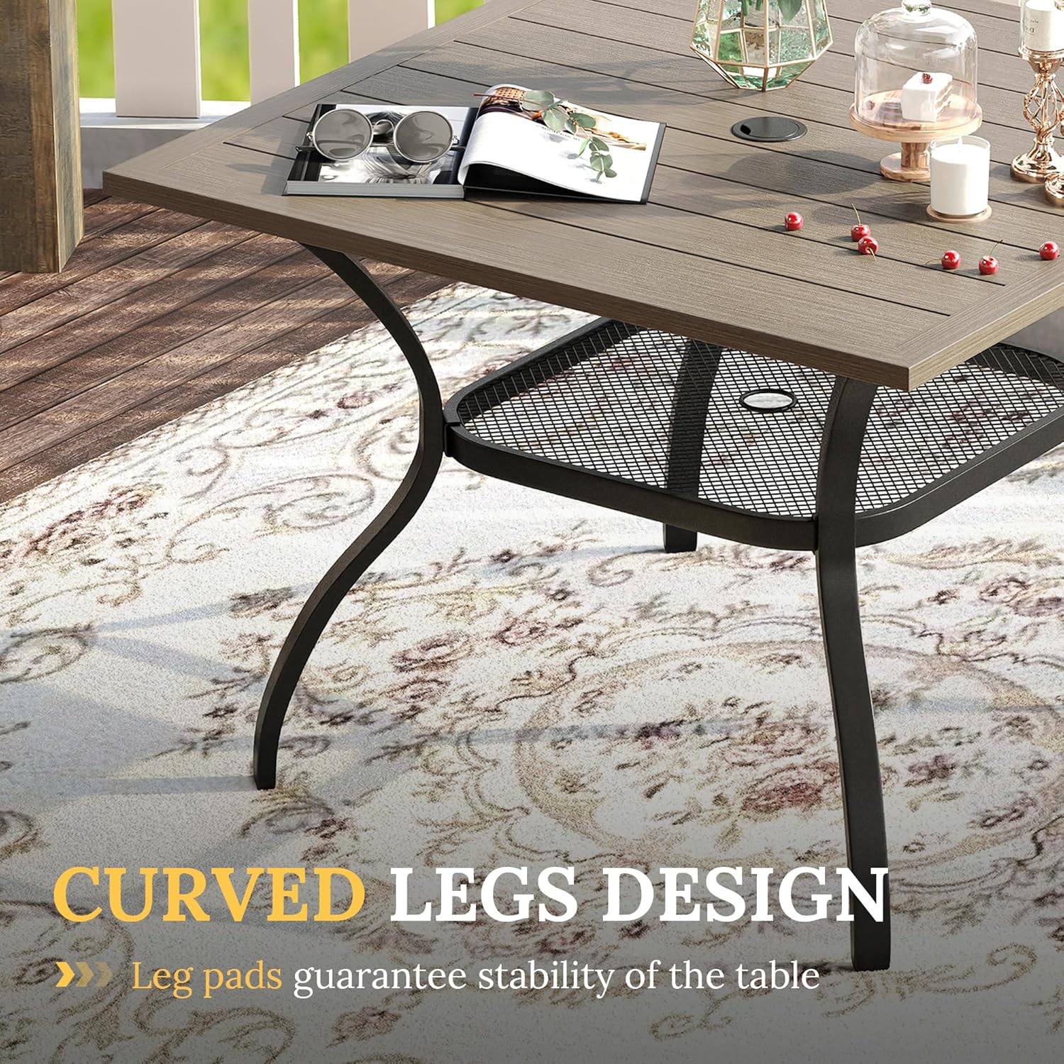 - 【Square Patio Table】Patio table set features a powder-coated frame, the bent leg design serves better stability and greater aesthetics, outfitted with an umbrella hole (1.9", hole cover included), opening to secure an umbrella to protect your food and guests from the bright sun