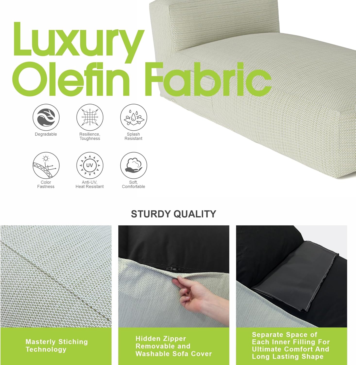 • Premium Olefin Fabric – Water Repellent, UV Resistant, and Durable - Made with high-performance olefin fabric, this lounger resists splashes, fading, and UV rays while remaining breathable and soft. Olefin is known for its color fastness, heat resistance, and eco-friendliness, making it the ideal material for outdoor lounge furniture that looks good and holds up season after season.