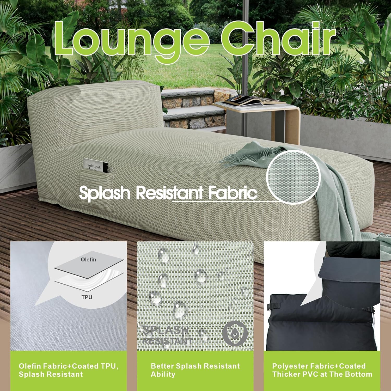 Outdoor Bean Bag Lounger Chair, Big Comfy Outdoor Daybed for Sunbathing and Tanning - Water-Resistant Patio Chaise and Pool Sun Lounger Furniture for Beach Deck (Sage Green)