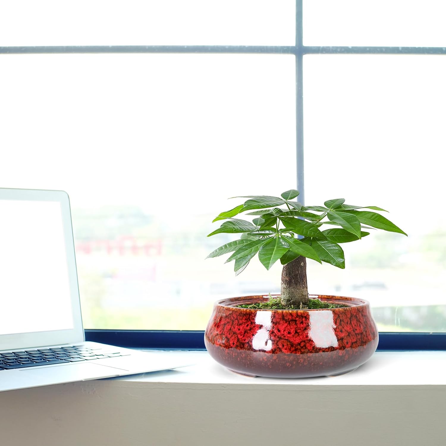 ARTKETTY Succulent Pots - 8 Inch Plant Pot, Large Bonsai Pots with Drainage, Ceramic Planters for Indoor Outdoor Plants, Round Shallow Cactus Flower Plant Container Bowl Decorative Home Garden