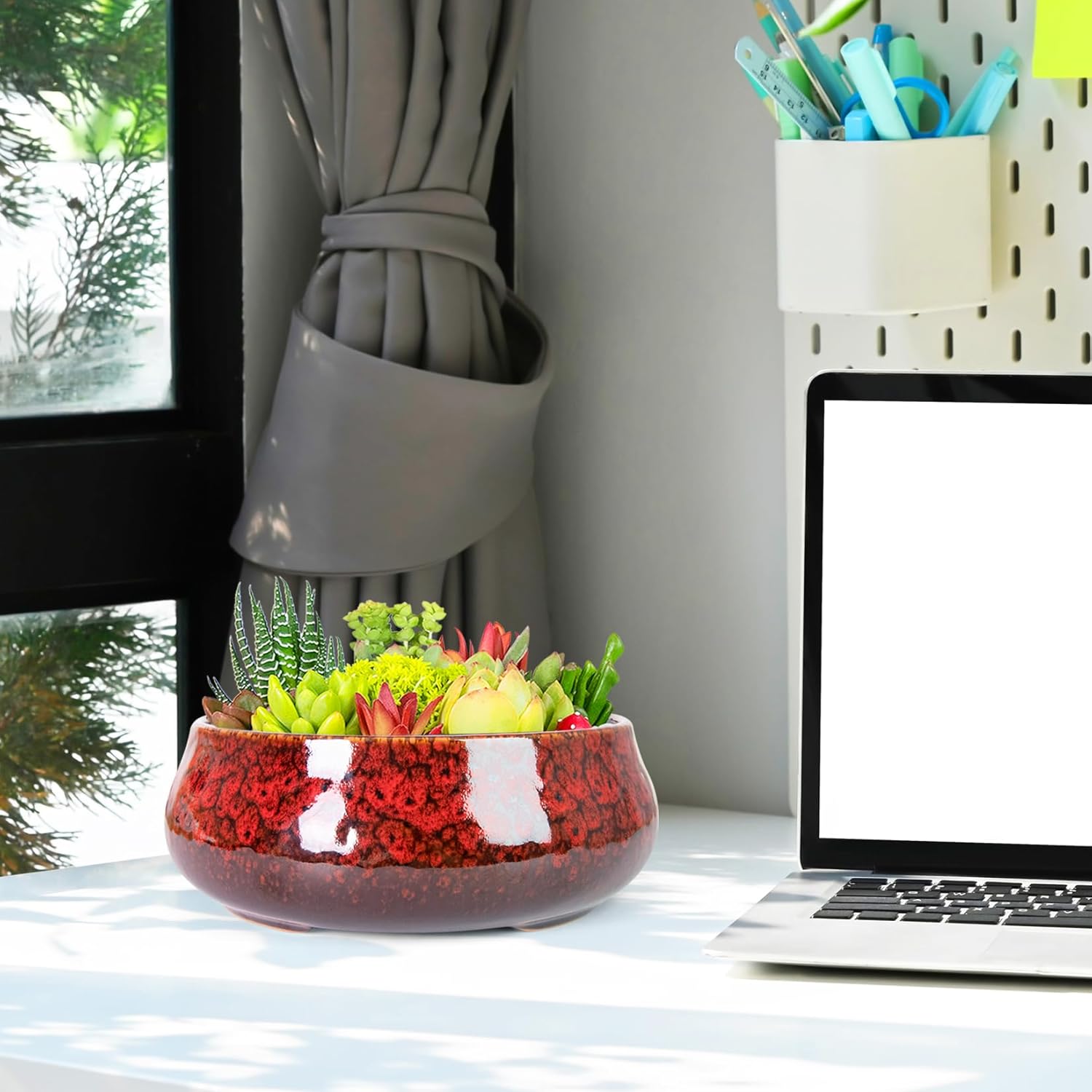 - 【Modern Design】The large succulent pot is made of rich ceramic by baking in high temperature, beautiful shallow planter with smooth finishing, this succulent planter pot is durable enough for long use