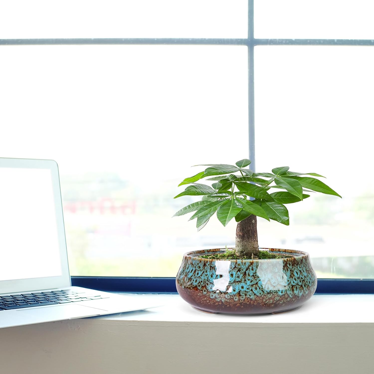 ARTKETTY Succulent Pots - 8 Inch Plant Pot, Large Bonsai Pots with Drainage, Ceramic Planters for Indoor Outdoor Plants, Round Shallow Cactus Flower Plant Container Bowl Decorative Home Garden