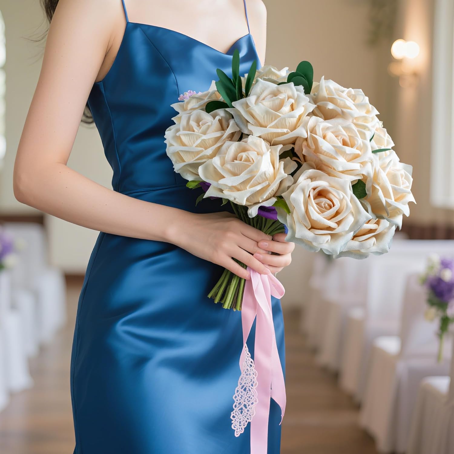 - Realistic Details of Silk Roses:Our silk roses, as high-quality artificial flowers, are extremely realistic. Their petals are rich in layers, with curled edges, clear textures and soft touch. The stems are made of plastic-wrapped metal cores, which are highly flexible and can be easily bent and shaped. The color transition of the stems is natural, with subtle concave and convex textures and moderate hardness, making them excellent realistic artificial flowers.