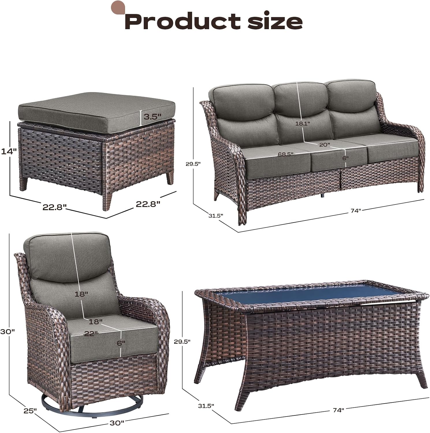 - 【Deep Seating & 6 inch Comfort Cushions】This rattan patio swivel chairs feature deep and wide seats with 6-inch thick sponge-padded cushions create the ultimate patio seating experience.