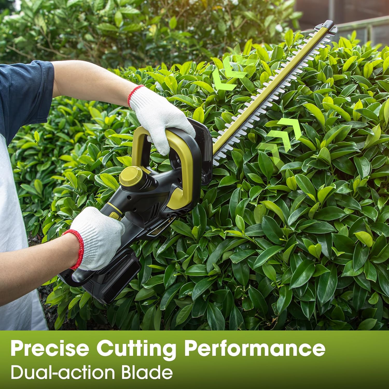 - [180ยฐ Rotating Handle for Versatile Precision]Gain effortless control with the 180ยฐ rotating handle of our cordless hedge trimmer. This feature enables smooth horizontal and vertical trimming. The lightweight construction minimizes body and arm fatigue, ensuring a comfortable and efficient trimming experience.