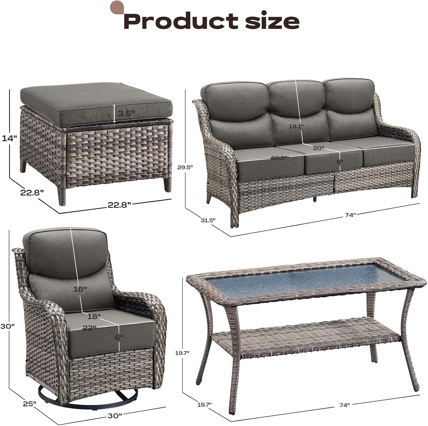 - 【Deep Seating & 6 inch Comfort Cushions】This rattan patio swivel chairs feature deep and wide seats with 6-inch thick sponge-padded cushions create the ultimate patio seating experience.