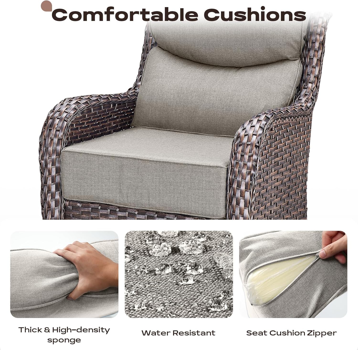- 【Rocking and 360°Swivel】Enjoying all-around mobility with rocker/glider feature.Full rotation allows you to face or leave the sun easily.The unique design of swinging back and forth allows you to enjoy ultimate relaxation.
