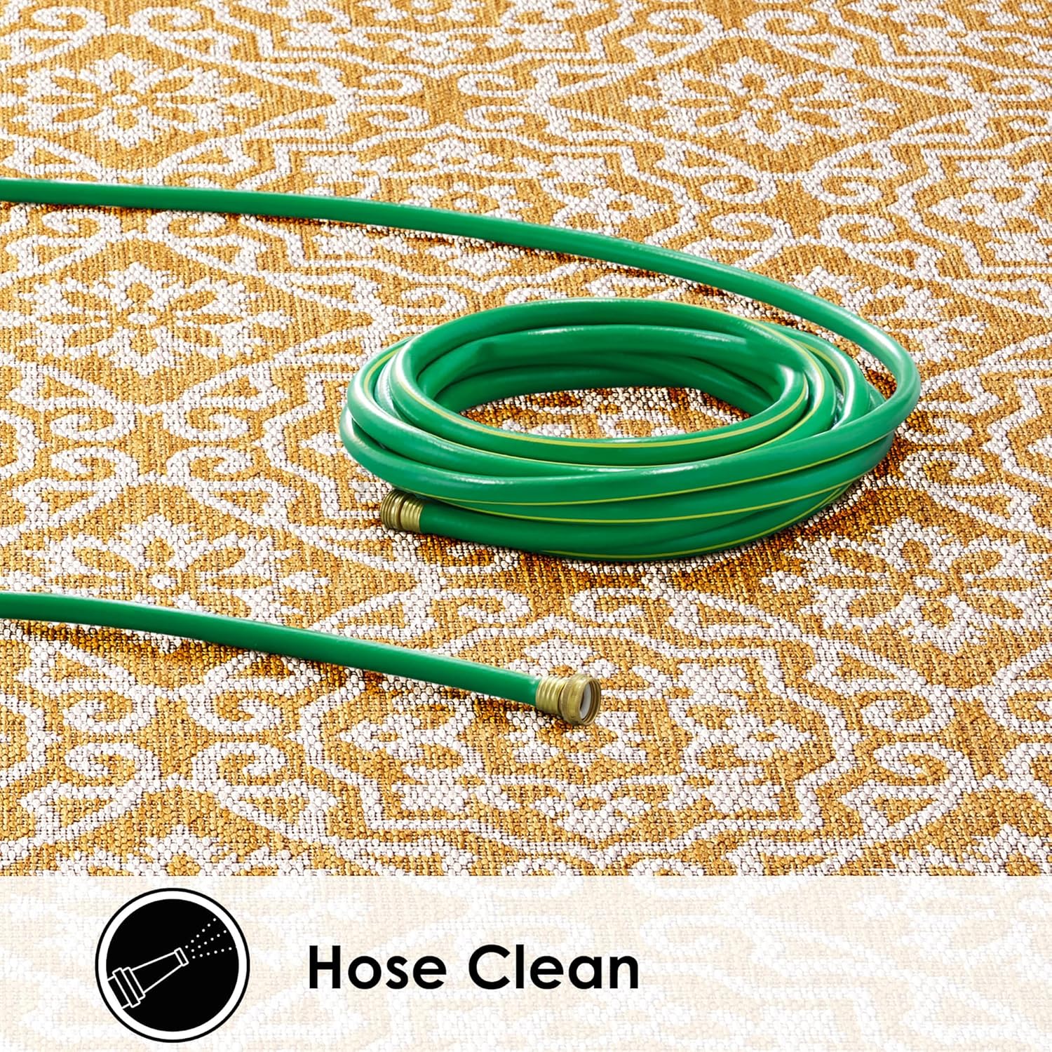 Nicole Miller New York Patio Country Julia Transitional Geometric Indoor/Outdoor Area Rug, Yellow/White, 6'6"x9'2"