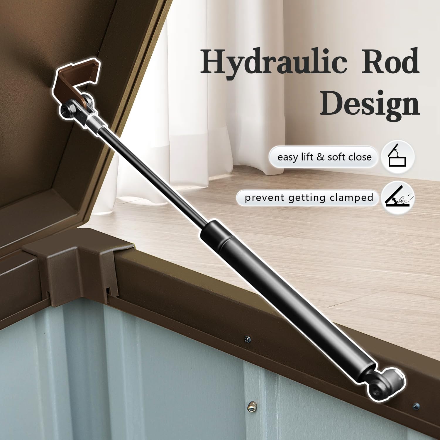 - Smooth Hydraulic Lid – Two hydraulic air rods ensure effortless opening and gentle, controlled closing, reducing the risk of pinched fingers for safe and hassle-free use.