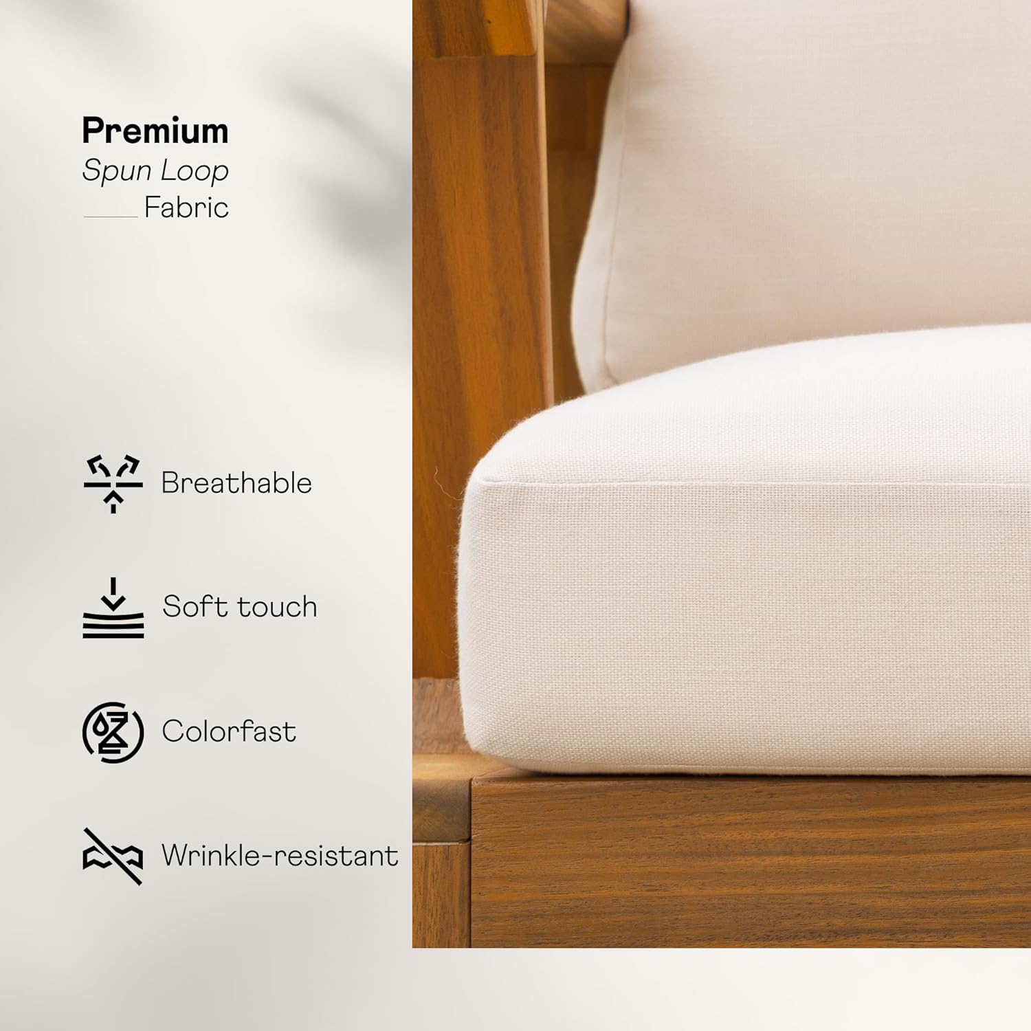 - SOFT BEIGE CUSHIONS INCLUDED: The plush seat and back cushions offer relaxing comfort and subtle contrast against the warm wood tones