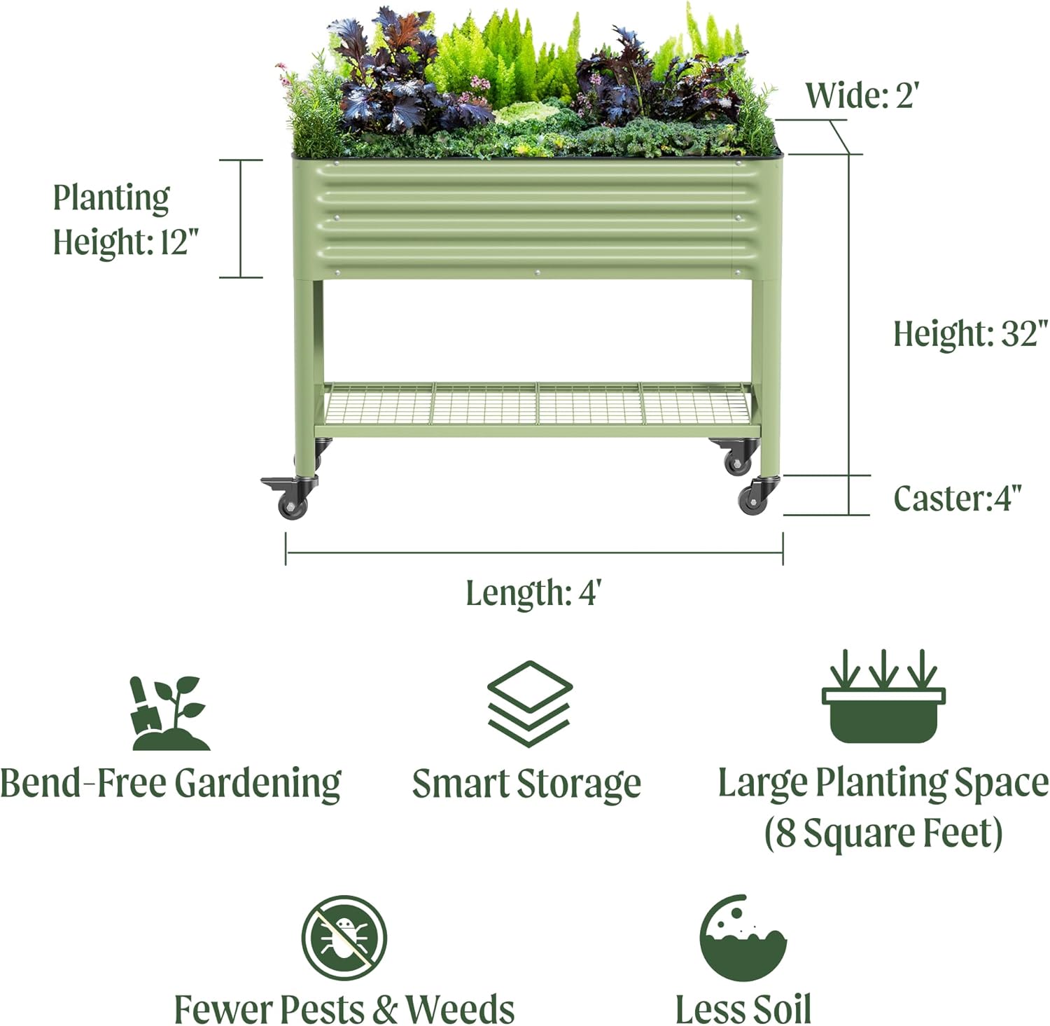 Rolling Elevated Raised Garden Bed-V Series, 2' x 4' Garden Beds with Legs & Storage Rack for Patio & Porch, 700 Lbs Weight Capacity, Outdoor Planter Box for Vegetables Flower Herbs, Modern Gray