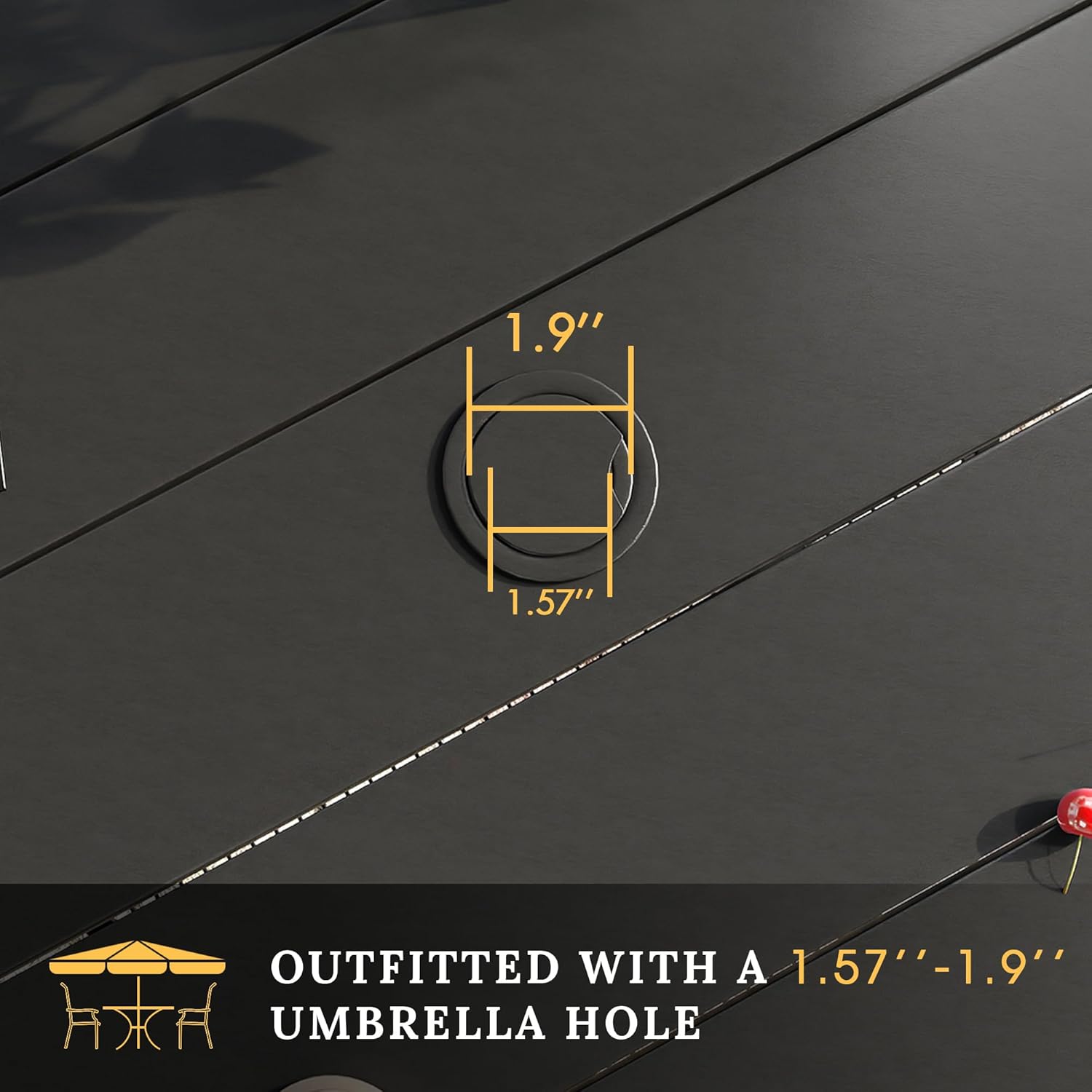 - 【Patio Dining Table】Patio round table set features a powder-coated frame, the bent leg design serves better stability and greater aesthetics, outfitted with an adjustable umbrella hole (1.57" -1.9", hole cover included), opening to secure an umbrella to protect your food and guests from the bright sun