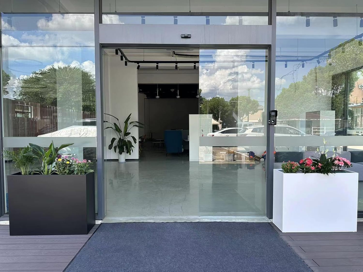 38" L x 13" W x 30" H Metal Tall Rectangular Planter - Large Planter Box for Outdoor Patio/Porch Modern Design for Plants, Flowers, Garden,Spliced Flower Pot (Navy)