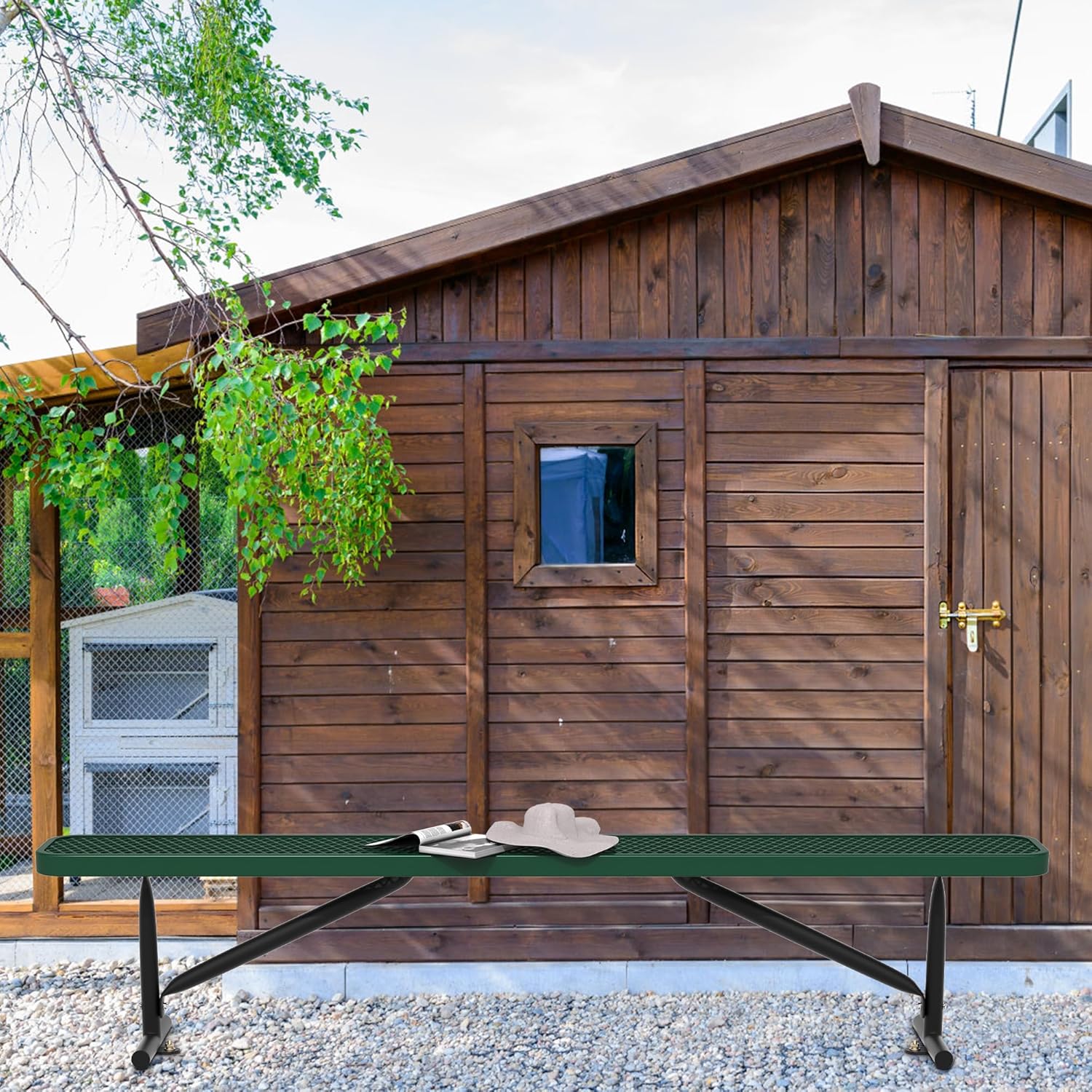8 Feet Heavy Duty Metal Park Bench for Outside, Outdoor Bench with Portable Frame, Commercial Benches for Shopping Mall, Store, Park, Patio, Deck, Green