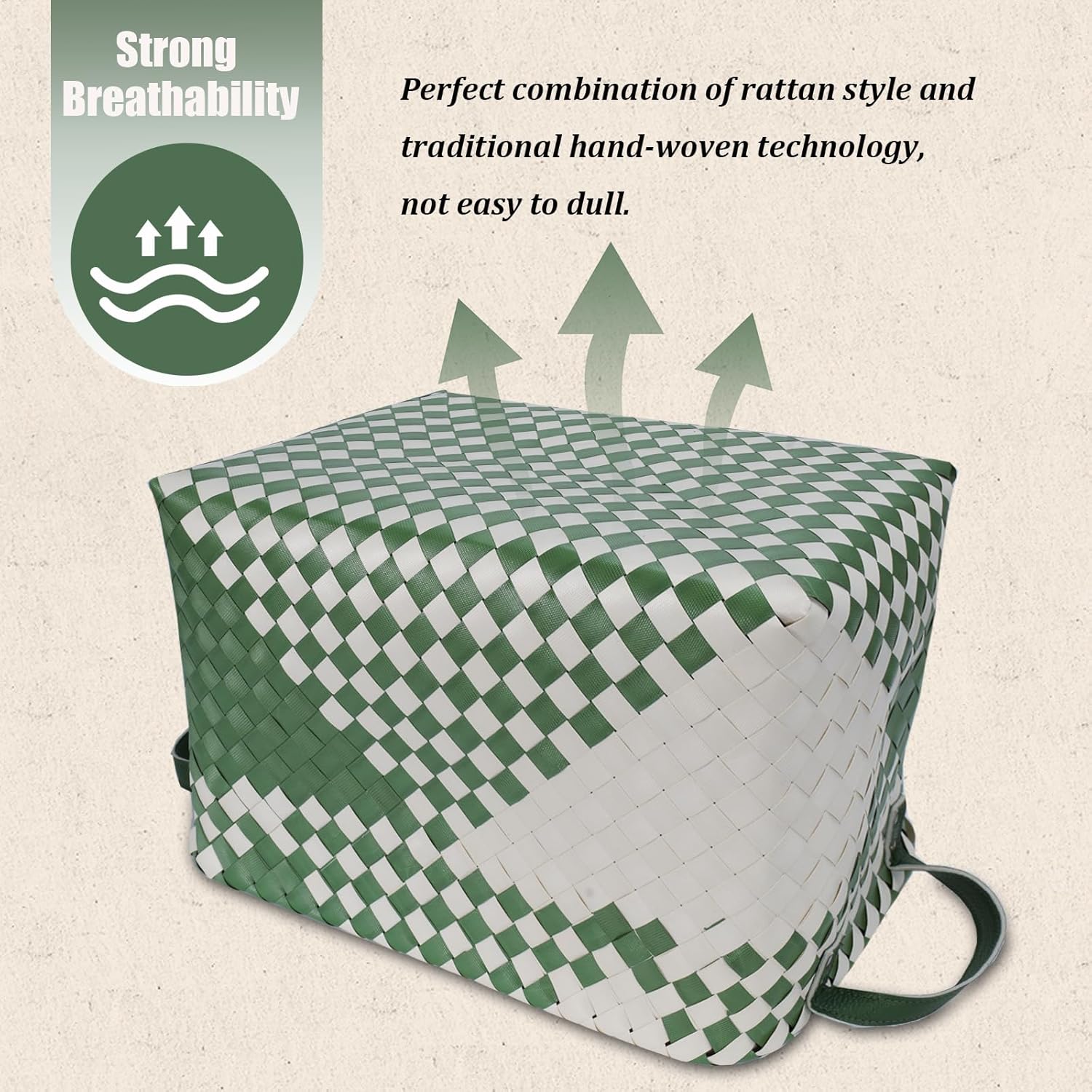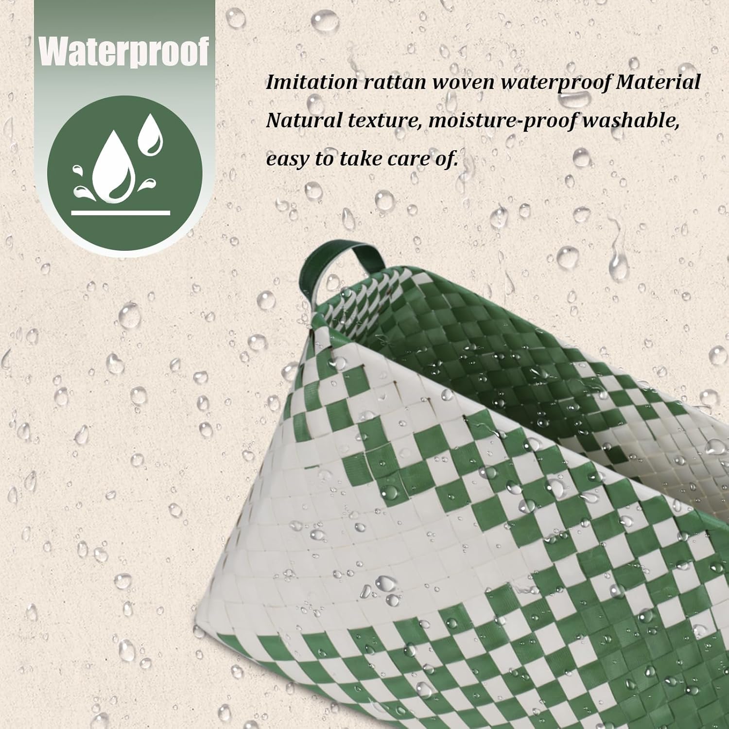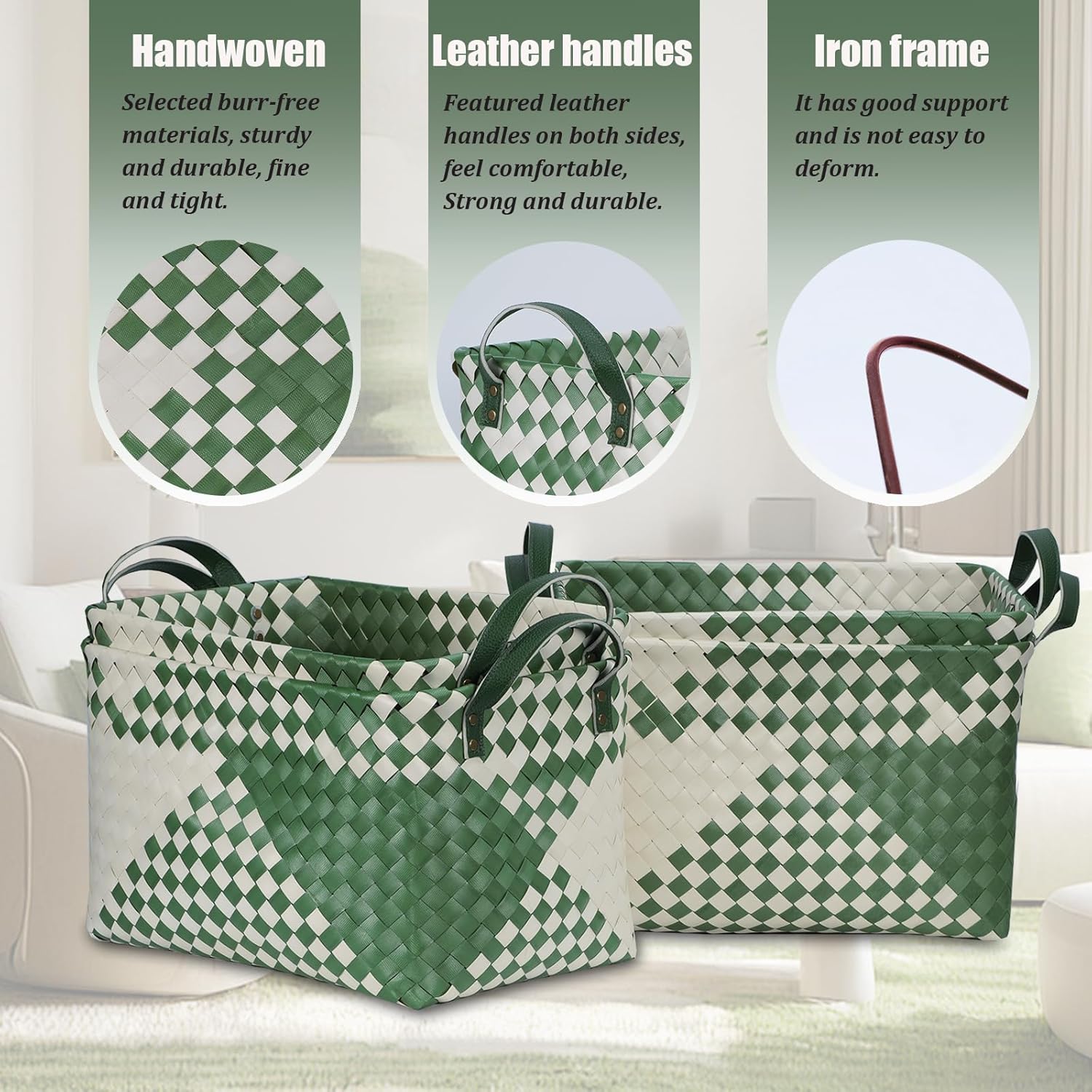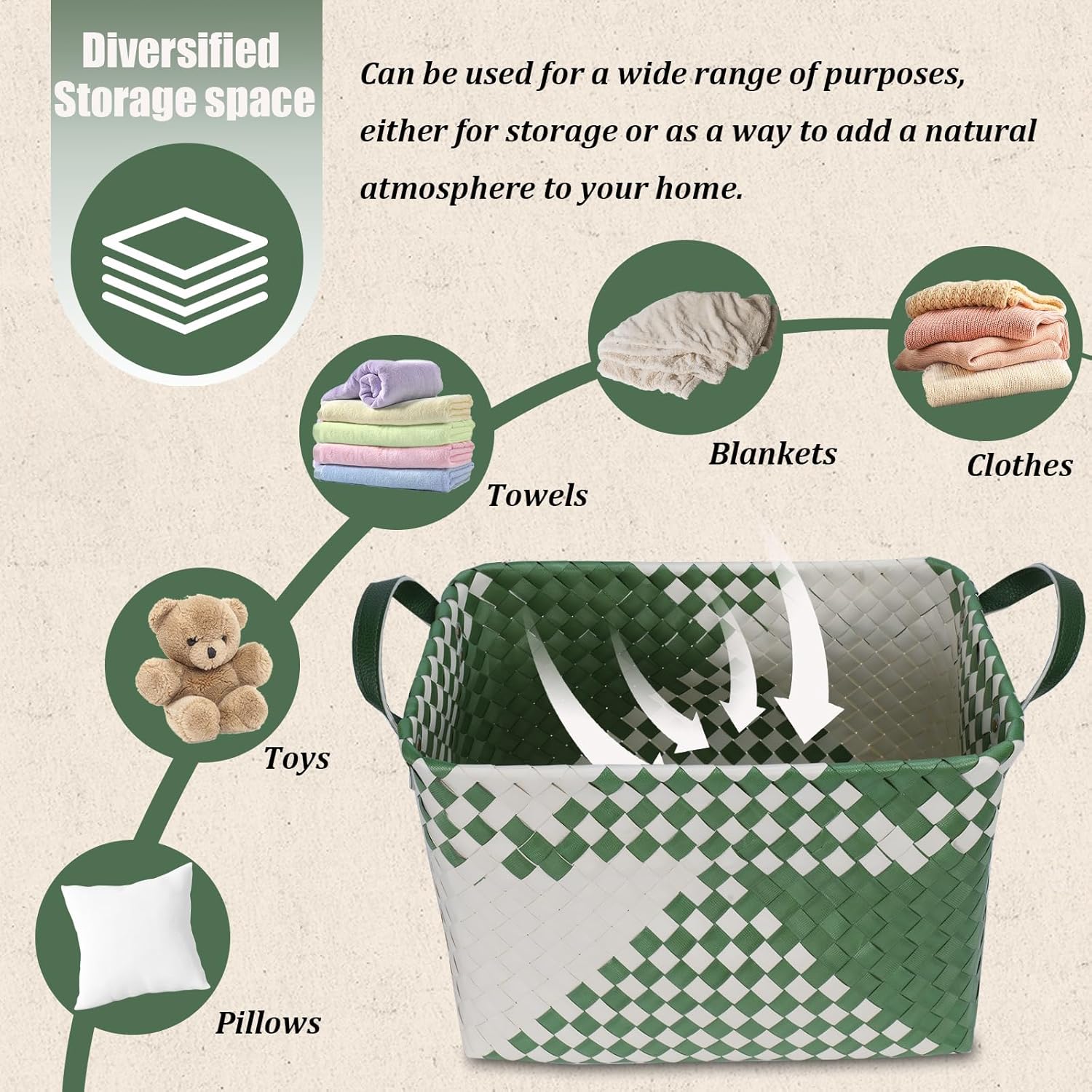 BROWNLILY Handwoven Clothes Basket Laundry Hampers Large Wicker Storage Baskets for Shelves Blankets Closet Storage Bins Car Bedroom Bathroom Organizers and Storage Bath (Pack of 4, Green&White)