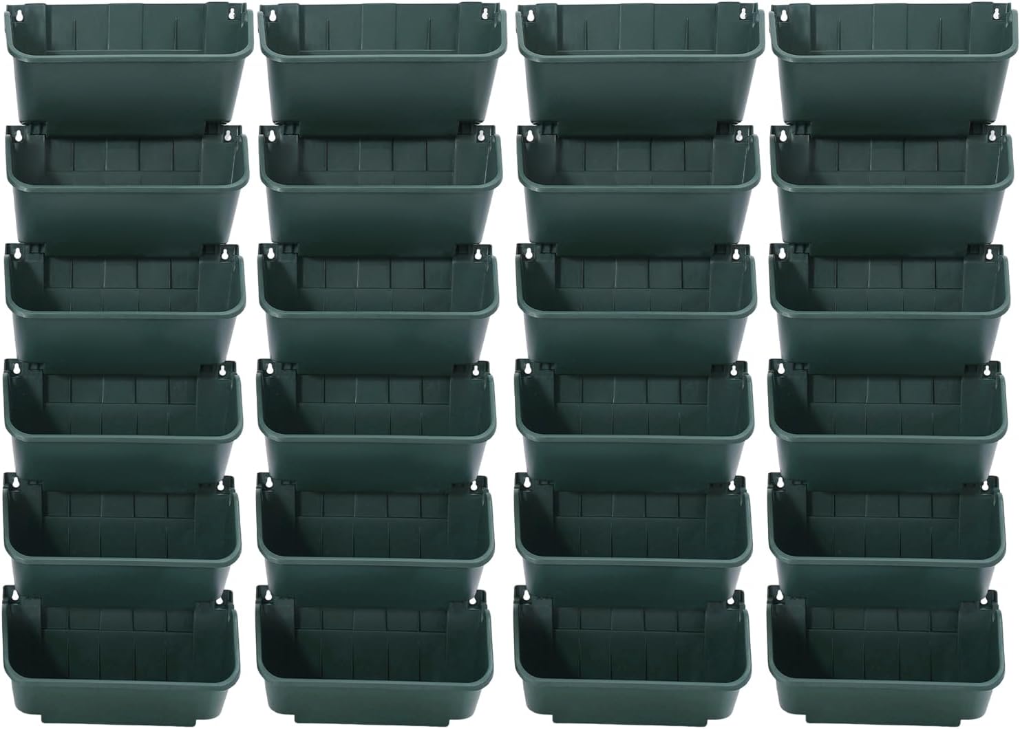 Vertical Wall Planter with 24 Plastic Pots, Wall-Mounted Garden Planter Stackable Wall Hanging Flower Pot Clasp Design with Grooves Drainage Holes for Indoor and Outdoor (Army Green 24)