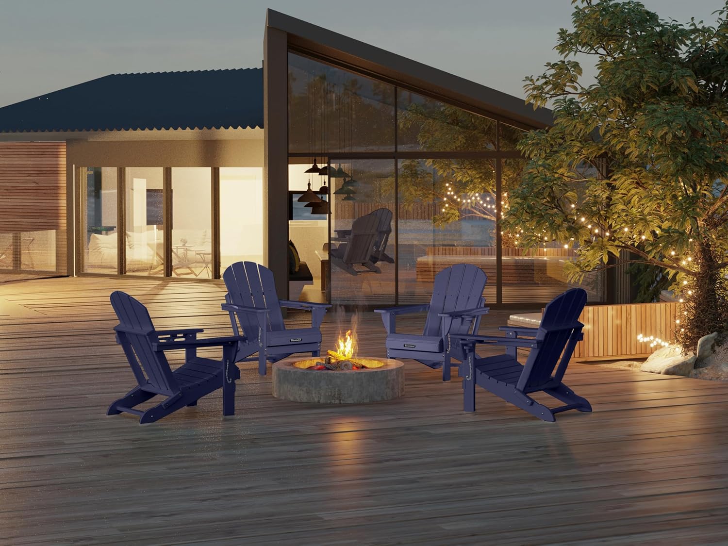 MUCHENGHY Folding Adirondack Chairs, Patio Chairs, Lawn Chairs, Outdoor Chair, Adirondack Chair Plastic, Fire Pit, Weather Resistant with Cup Holder for Deck, Backyard, Garden(Dark Navy Blue)
