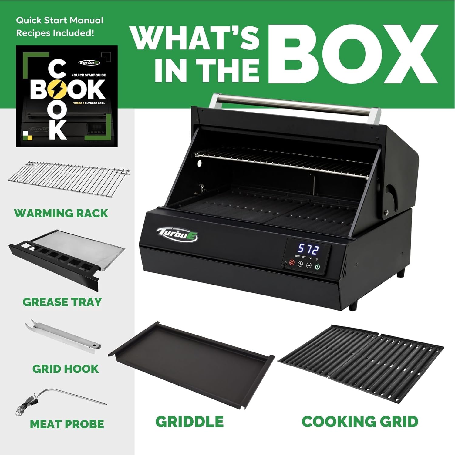 - EFFORTLESS DURABILITY: Built from high-quality materials like aluminum and porcelain, The Turbo E BBQ grill is designed for easy cleaning and durability. Experience seamless and enjoyable outdoor cooking