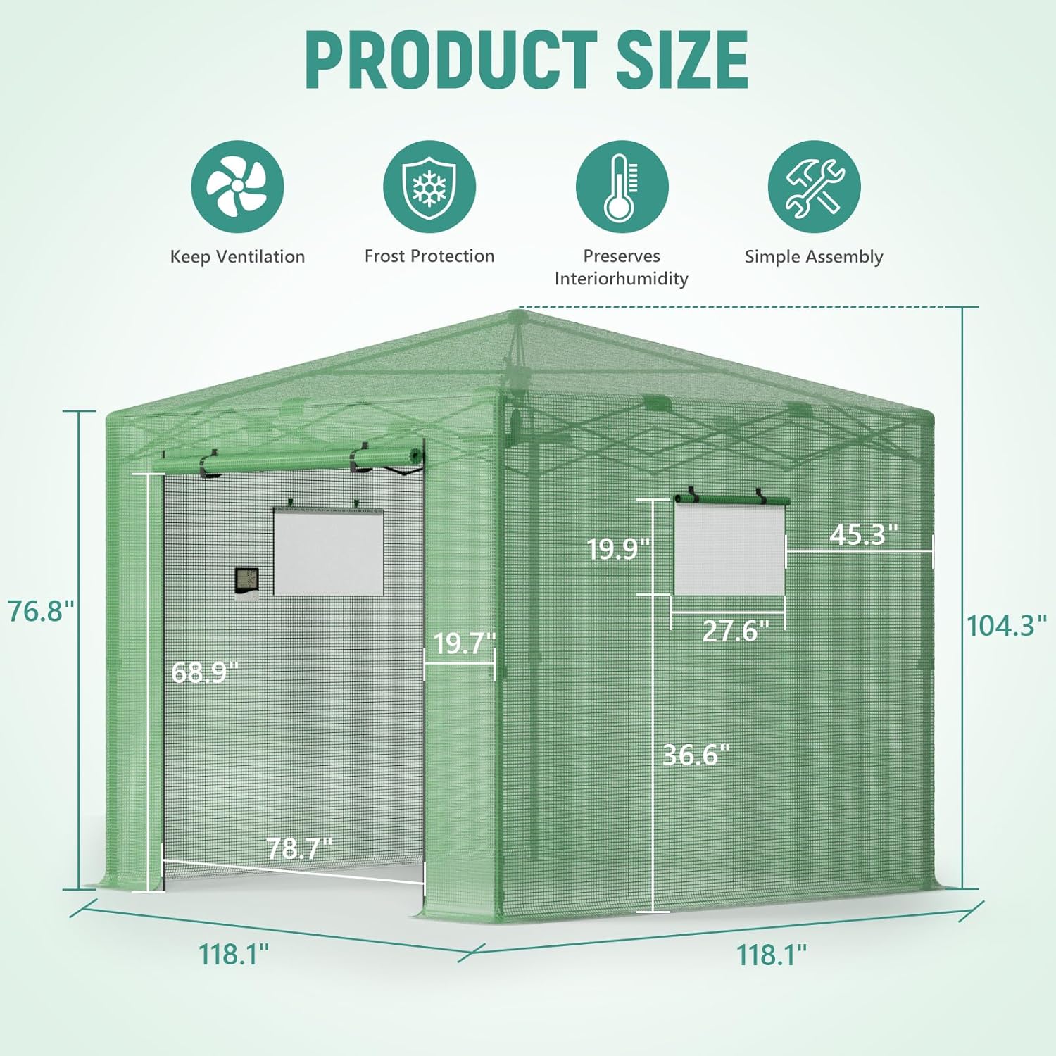 Pop Up Greenhouse 10x10FT, Pop Up Green House for Outdoors, Portable Greenhouses, Walk-in Greenhouses, Popup Greenhouse Kit, Easy Set Up
