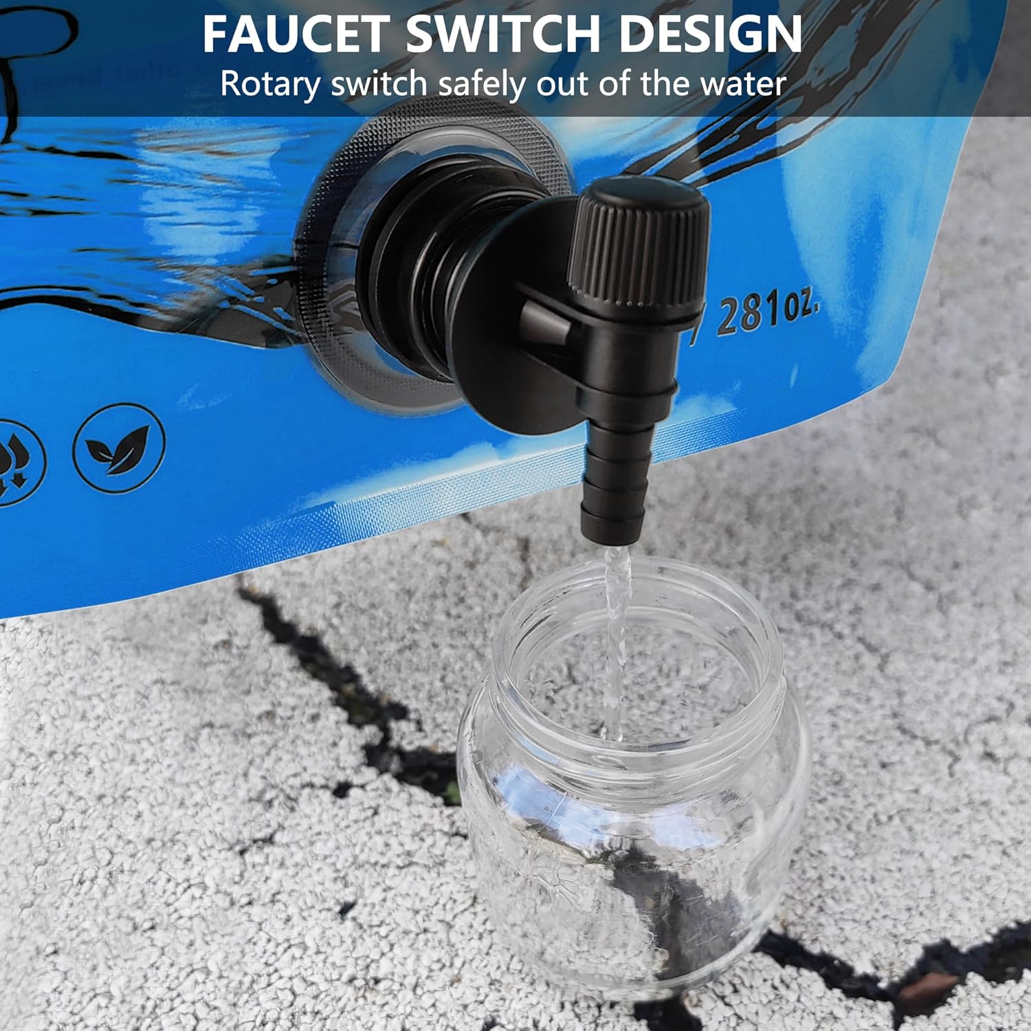 Collapsible 8L Water Storage Bag, BPA-Free Portable Folding Water Jug with Adjustable Faucet, Leakproof Emergency Water Bag for Camping, Hiking, Riding, Outdoor Sport (Blue, 1)