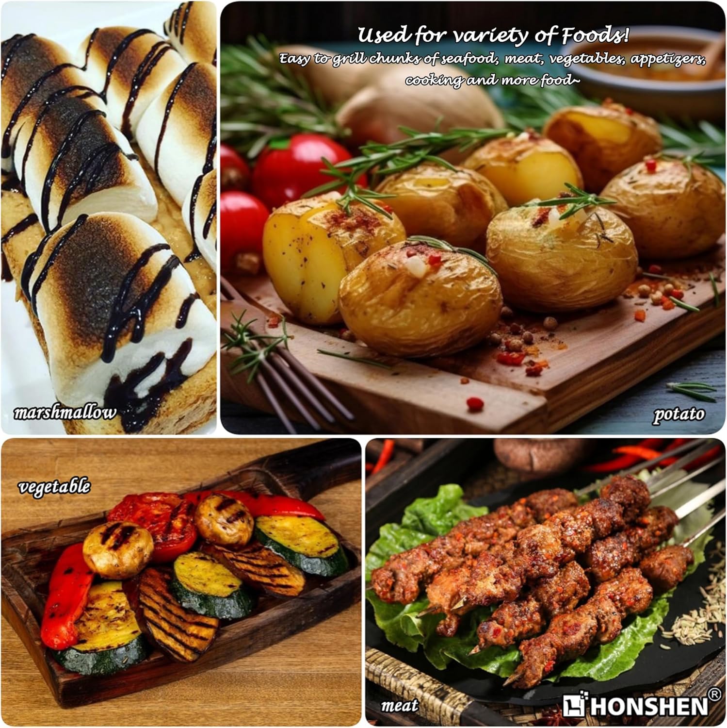 - MULTIPURPOSE & EASY TO CLEAN: Stainless steel kabob skewers are reusable. After each time’s use, just let these grilling skewers sit in warm water, hand wash with gentle detergent or threw them in dishwasher,wipe away water and keep in dry place, and they’ll come out as new. The metal shish kabab skewers can be can be reused, saving you money completely. Perfect tool for grilling kabobs, hotdogs, sausages, seafood, s'mores or even for making treats like candy apples and tanghulu;