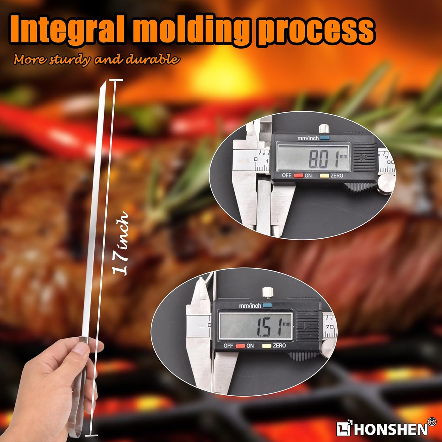 - 17''SUPER LONG LENGTH: Tired of burning your hands and arms on flimsy disposable skewers? Then switch to a longer and safer zero-waste alternative! Its length of 17 inches accommodates 6 to 8 chunks of meat or other food ingredients, ensuring your food cooks - not your hands;