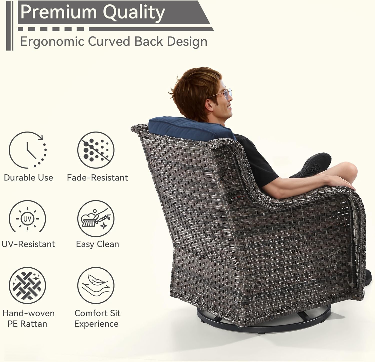 Outdoor Swivel Rocker Patio Chairs Set of 2 - Outdoor Wicker Patio Conversation Sets 2 Pieces with Olefin Fabric Cushions Suitable for Backyard Deck and Porch, Blue