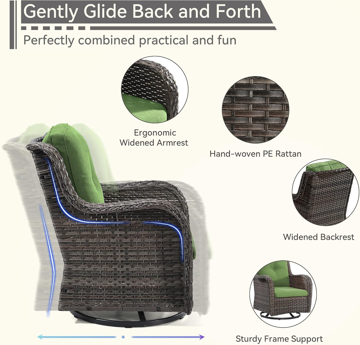 5 Pieces Outdoor Patio Furniture Set - Conversation Set Includes Wicker Swivel Rocker Chairs Set of 2, 2 Ottoman, 3 Seat Sofa, Suitable for Porch, Yard, Mixed Brown Rattan, Green