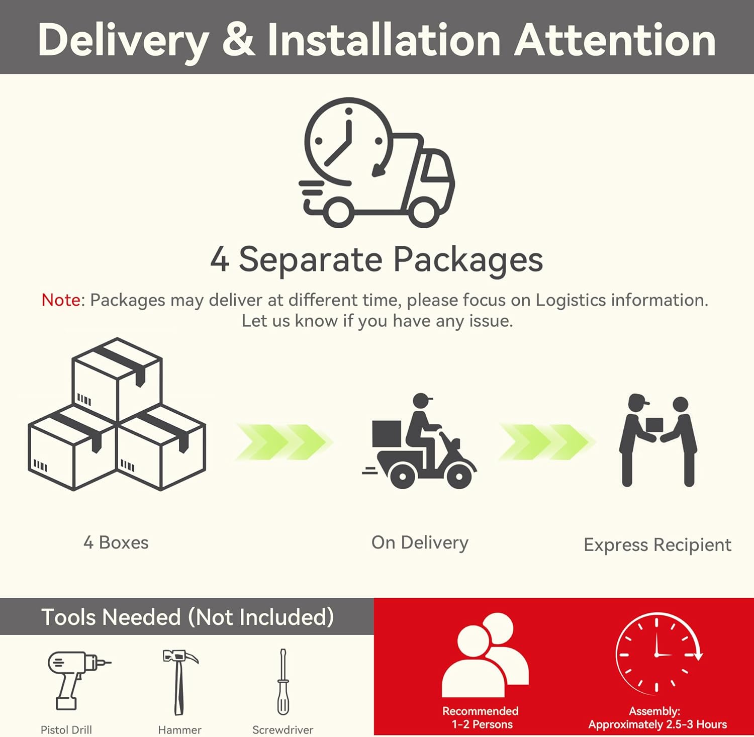 - [Easy Assembly] All accessories, hardware, and instructions booklet are included in the package. If you have any questions, please let us know first, and we will reply to you ASAP