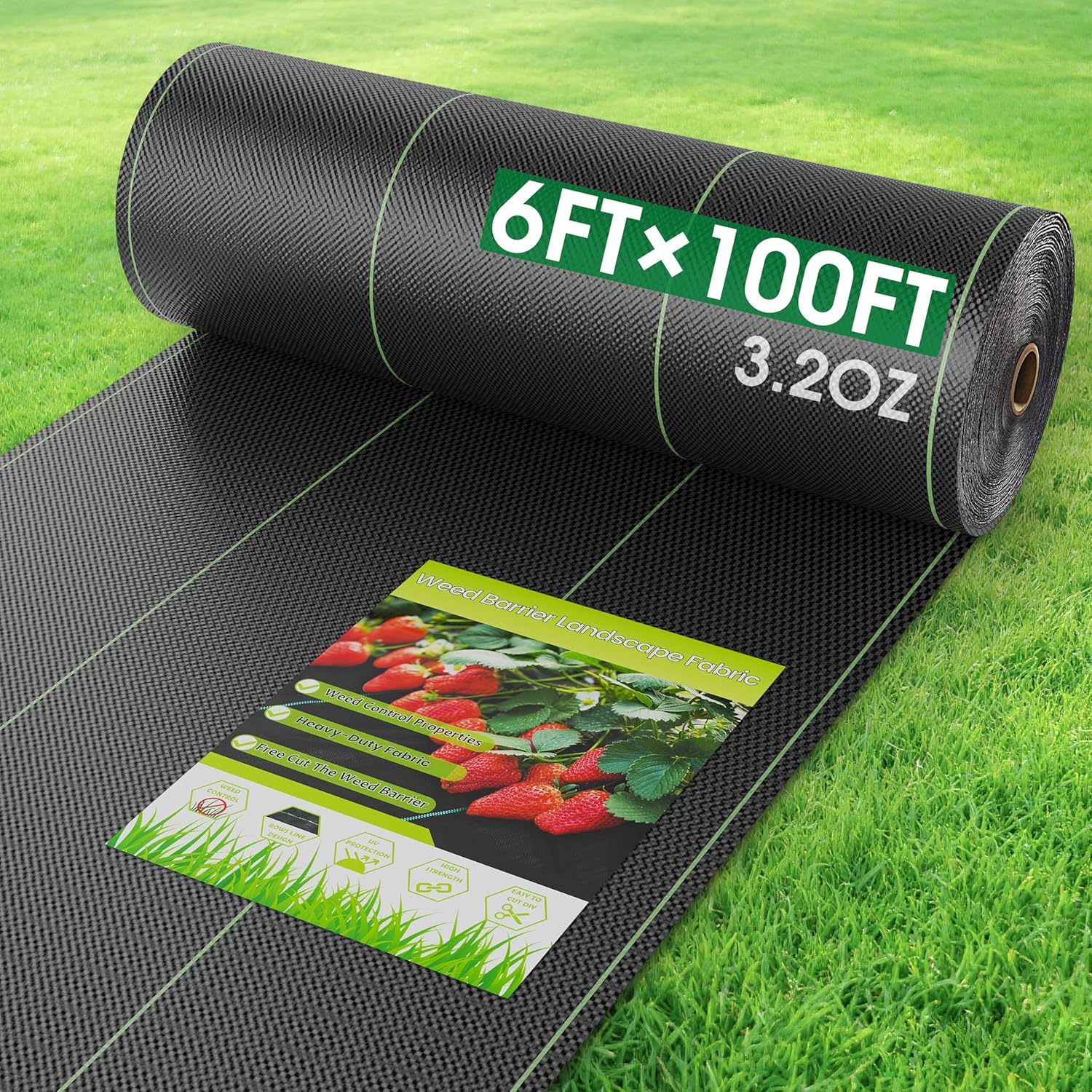 6FTx100FT Weed Barrier Fabric Heavy Duty, Gardening Landscape Fabric Cover Mat, Durable Weed Control Fabric for Garden Bed Cover, Landscaping, Commercial Driveway, Underlayment Use (6x100FT-3.2OZ)