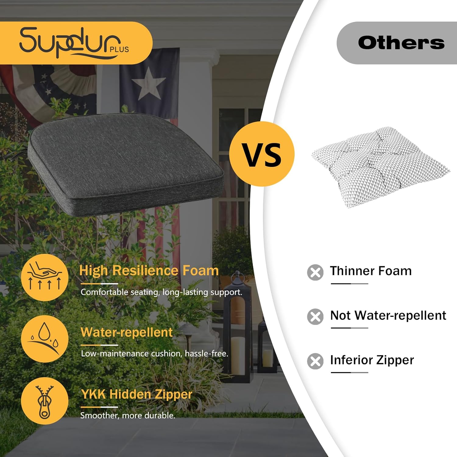 - High-density Foam: Made with thick, high-resilience foam that bounces back quickly after use, providing soft support and lasting comfort.Perfect for long hours of sitting while enjoying the outdoors.