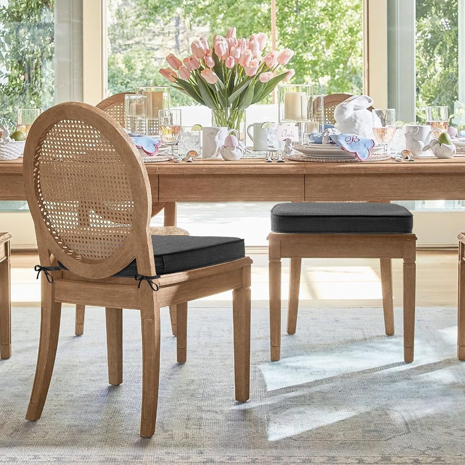 - Water Repellent Cover: The outdoor chair cushions are made with 100% durable polyester fabric that is water repellent and fade-resistant, providing a comfortable seating experience.