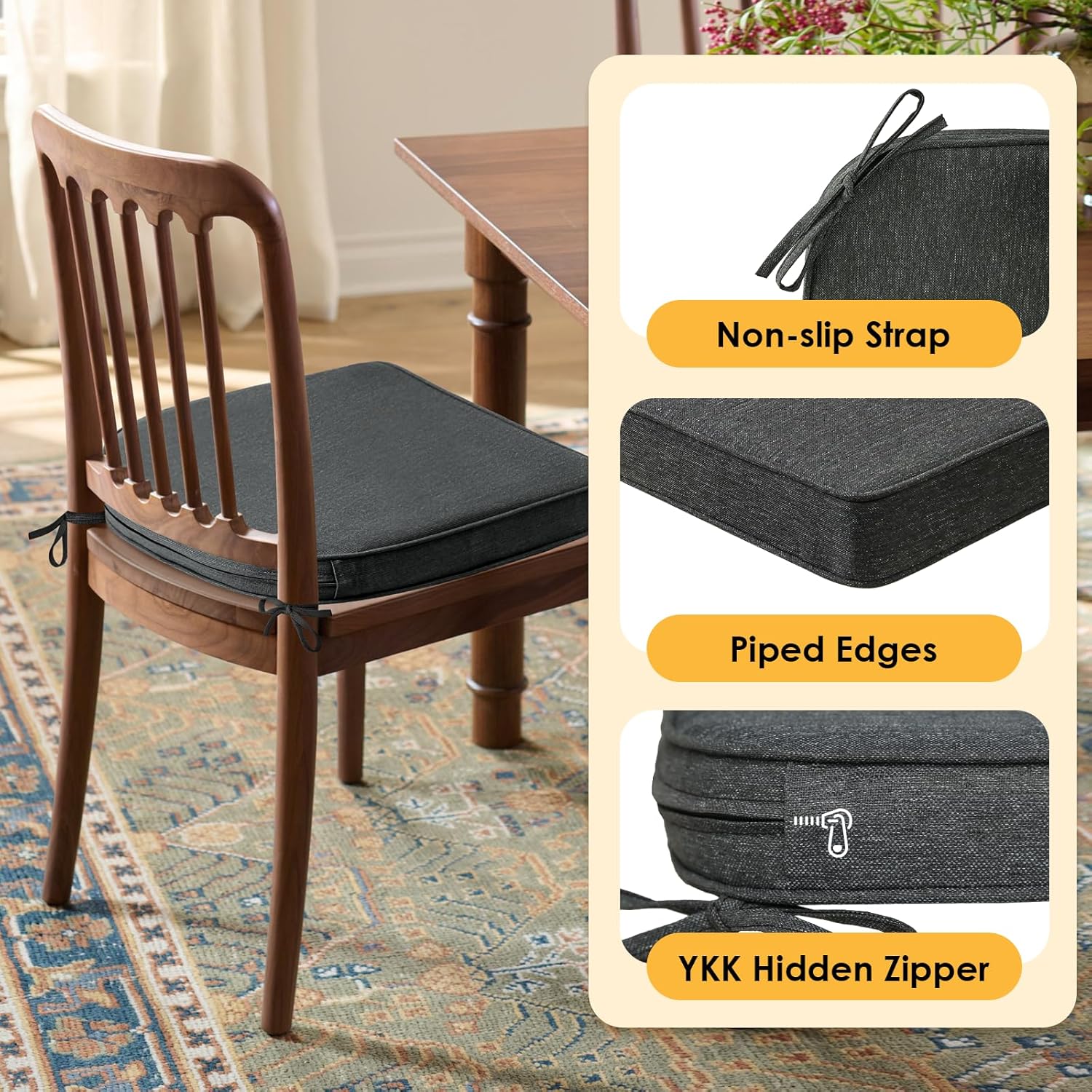 - Non-slip Ties & Piped edge: There are 2 straps on each side of the outdoor furniture cushions to keep stable and feature piped edges for a polished look and superior durability.
